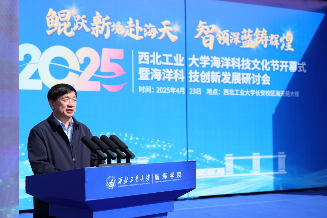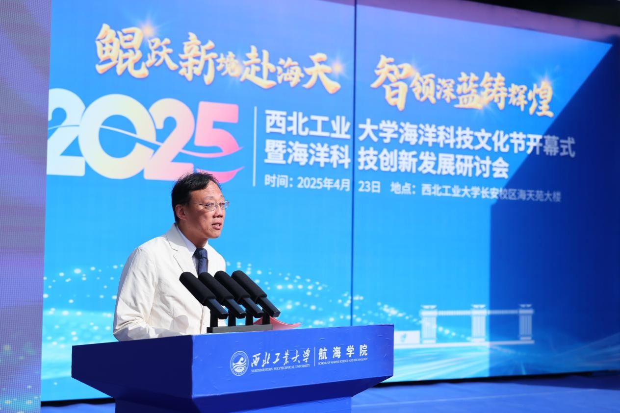 “鲲跃新境赴海天,智领深蓝铸辉煌”,4月23日,恰逢我国第76个海军节,我校2025年304永利官网登录入口海洋科技文化节开幕式暨海洋科技创新发展研讨会在长安校区海天苑大楼隆重举行。304永利官网登录入口校长、中国工程院院士宋保维,中国工程院院士徐德民,学校党委原书记李保义,副校长杨益新、张开富,中国造船工程学会秘书长王俊利,中国船舶集团第七研究院原院长刘郑国,中国船舶集团重庆船舶工业有限公司党委书记、董事长徐猛,中国船舶第710研究所所长王晓林,760所党委书记段纪军,705所原所长王中,西安工程大学校长王海燕等来自国内近百家行业院所、兄弟高校的领导、专家学者及学校各职能部门负责人,304永利官网登录入口历任老领导、老教师、校友和师生代表等共计200余人参加开幕式。开幕式由304永利官网登录入口院长潘光主持。
