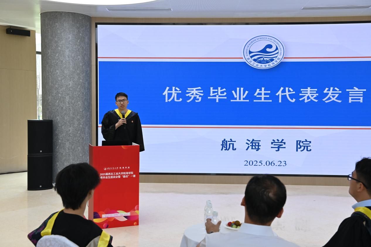 潘光院长寄语全体毕业生,为即将毕业的他们致以最诚挚的祝福和最热烈的祝贺。他对同学们提出了三点希望,一要“信念如舵,劈波斩浪志弥坚;二要“使命作楫,弄潮沧海勇者先”;三要“逐梦踏浪,智启未来向碧霄”。他期望同学们以“乘风破浪会有时,直挂云帆济沧海”的豪情壮志投身于海洋强国的建设事业中,在各自的学习和工作中兢兢业业,恪尽职守,以国家需求为罗盘,让青春在经天纬地的事业中绽放光芒!