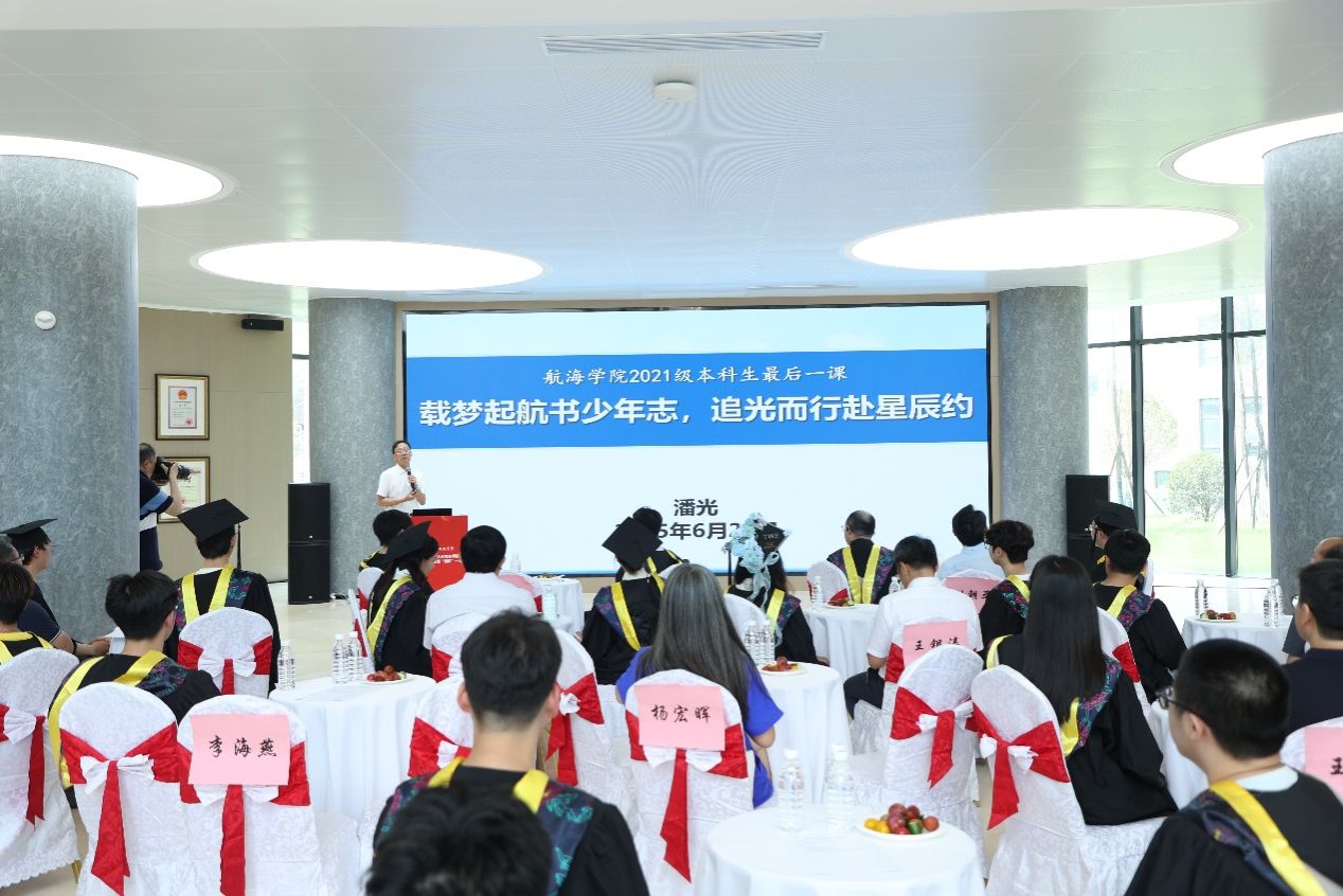在毕业生即将告别校园、踏上新征程之际,304永利官网登录入口院长潘光为大家讲授了一堂意义深刻的离校前“最后”一课。他详细介绍了学院发展及专业学科建设情况,并寄语同学们要传承“敢为人先、攻坚克难、团结协作、无私奉献”的航海精神,为国家海洋事业贡献青春力量!