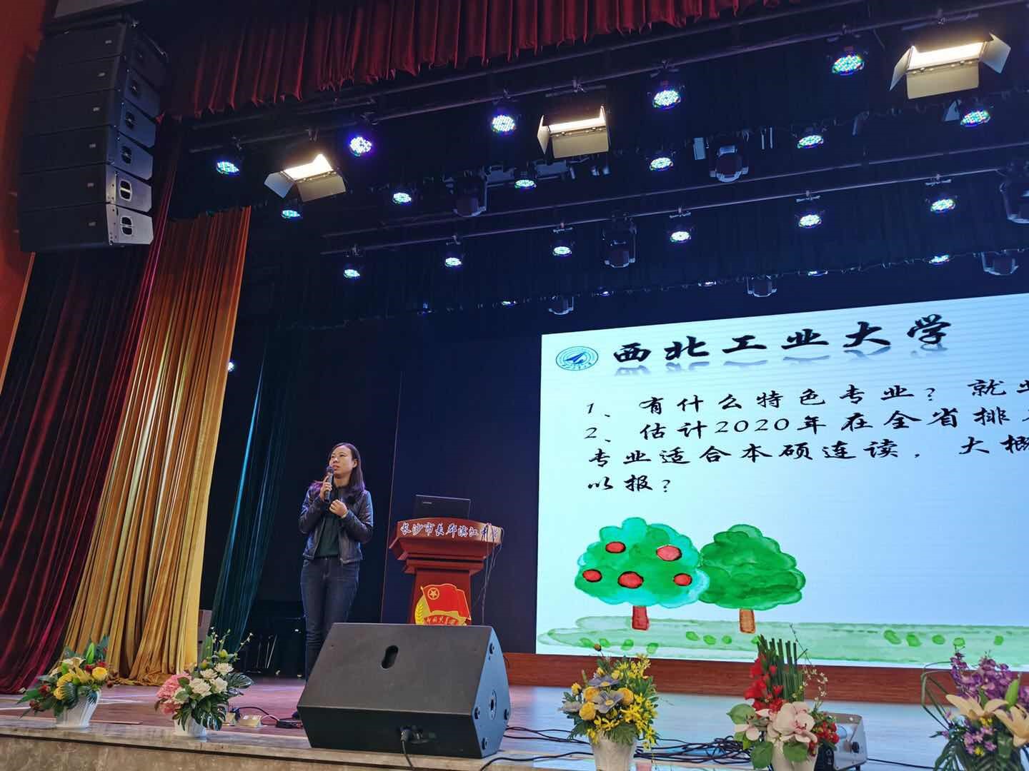 活动中,同学们首先通过观看高校宣讲视频,对各高校的自然环境、人文环境有了直观的了解。之后,各高校招生负责人轮番宣讲,介绍了自己高校的发展历程、办学优势、特色专业、招生政策等情况。经过前期几次“名校面对面”高校宣讲活动后,宣讲形式也在不断翻新,本次采取翻转课堂的模式——各高校先把宣讲PPT发给各宣讲中学,各中学分别集中组织学生学习后,提出想要了解的问题,我们宣讲时现场解答。针对我校的问题是“有什么特色专业?就业前景如何?”“估计2020年在全省排名多少可以报考?哪些专业适合本硕连读,大概要高于投档线多少分可以报?”戚茜老师通过一一解答,详细介绍了我校的“三航”特色,以及就业前景等情况。同学们全神贯注、耳听心受,现场气氛热烈。