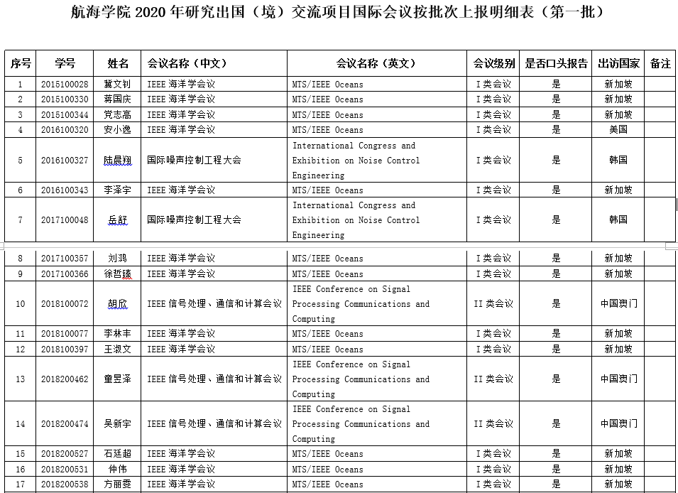 现公布304永利官网登录入口2020年研究生出国(境)交流项目国际会议按批次上报明细表(第一批)受资助学生名单。公示期2020年5月16日-2020年5月23日。
