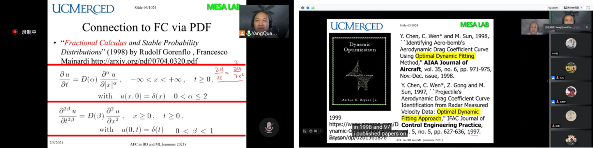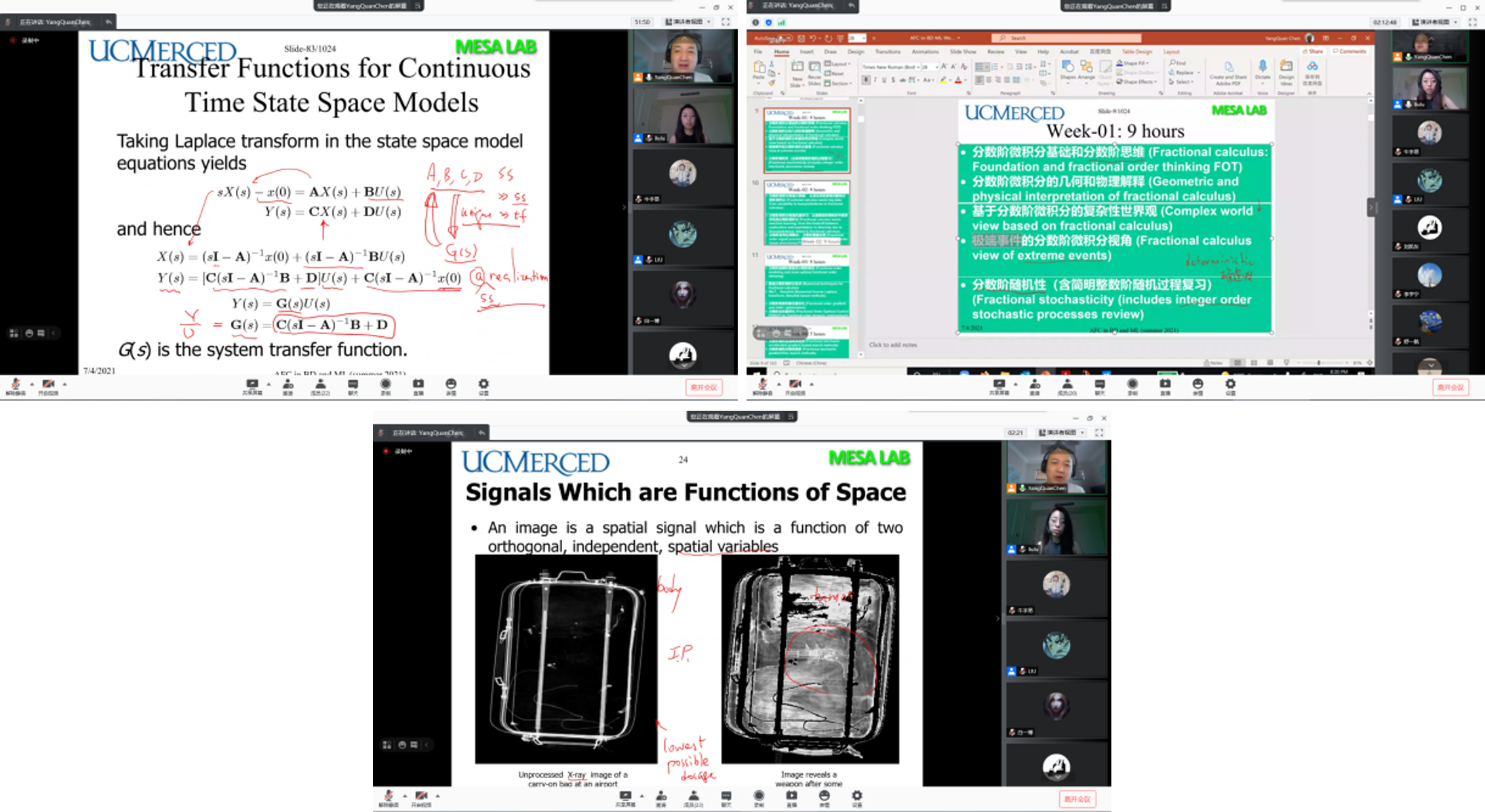 7月5日- 7月28日,应304永利官网登录入口刘禄老师邀请,加州大学默塞德分校工程学院YangQuan Chen教授于线上开展分数阶微积分与机器学习课程,选课学生一共20人,其中本科生9人,研究生11人,本课程一共32学时,以分数阶微积分(非整数阶微分或积分)及其在大数据和机器学习中的应用为主线,介绍国际热点研究问题分数阶微积分基础和分数阶思想、分数阶微积分与大数据、机器学习的关联,并介绍数值分数阶微积分技术、分数阶梯度和静动态最优化问题等,以及复杂动态系统的分数阶动态建模和控制、分数阶信号处理的基础知识。
