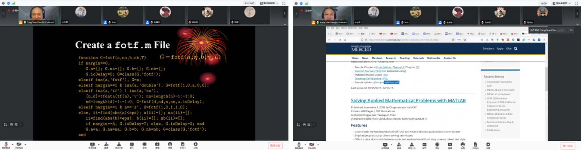 授课过程中,YangQuan Chen教授还向同学们分享了许多相关的网站、书籍和文章,帮助同学们对分数阶微积分有一个更全面的认识,并可以在课程结束后对感兴趣的部分继续深入研究。