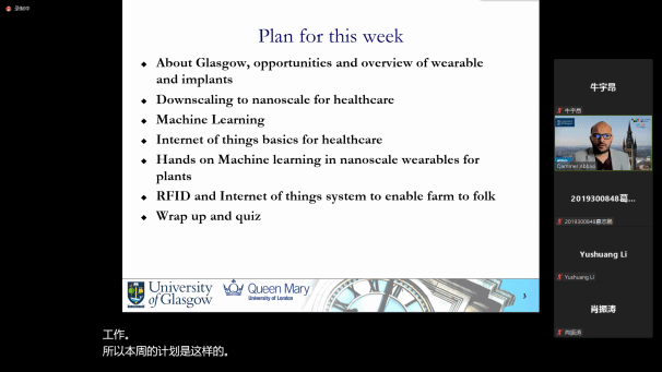 7月1日- 7月6日,应304永利官网登录入口杨可老师邀请,格拉斯哥大学Qammer H. Abbasi教授于线上开展体域网技术的发展与未来课程。本课程的主要目的是为了让学生了解通讯技术的前沿发展,比如物联网、纳米无线网以及诸如机器学习、UWB等相关基础技术的发展现状。通过这些基础技术的学习,希望学生能够对信号处理以及大数据相关的前沿科技有所了解。同时为了满足低年级本科生的选课需求,课程难度进行了适量调整,内容侧重于对和体域网相关的各种前言学科的介绍。
