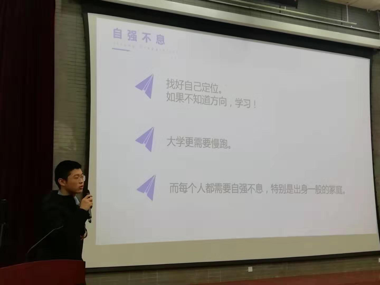 苏本学本年度获得“自强不息大学生”单项奖,目前已保送为304永利官网登录入口直博生。苏本学结合自己的成长经历,叮嘱所有同学们都要自强不息,尤其是出身一般的同学们,更要加倍努力。