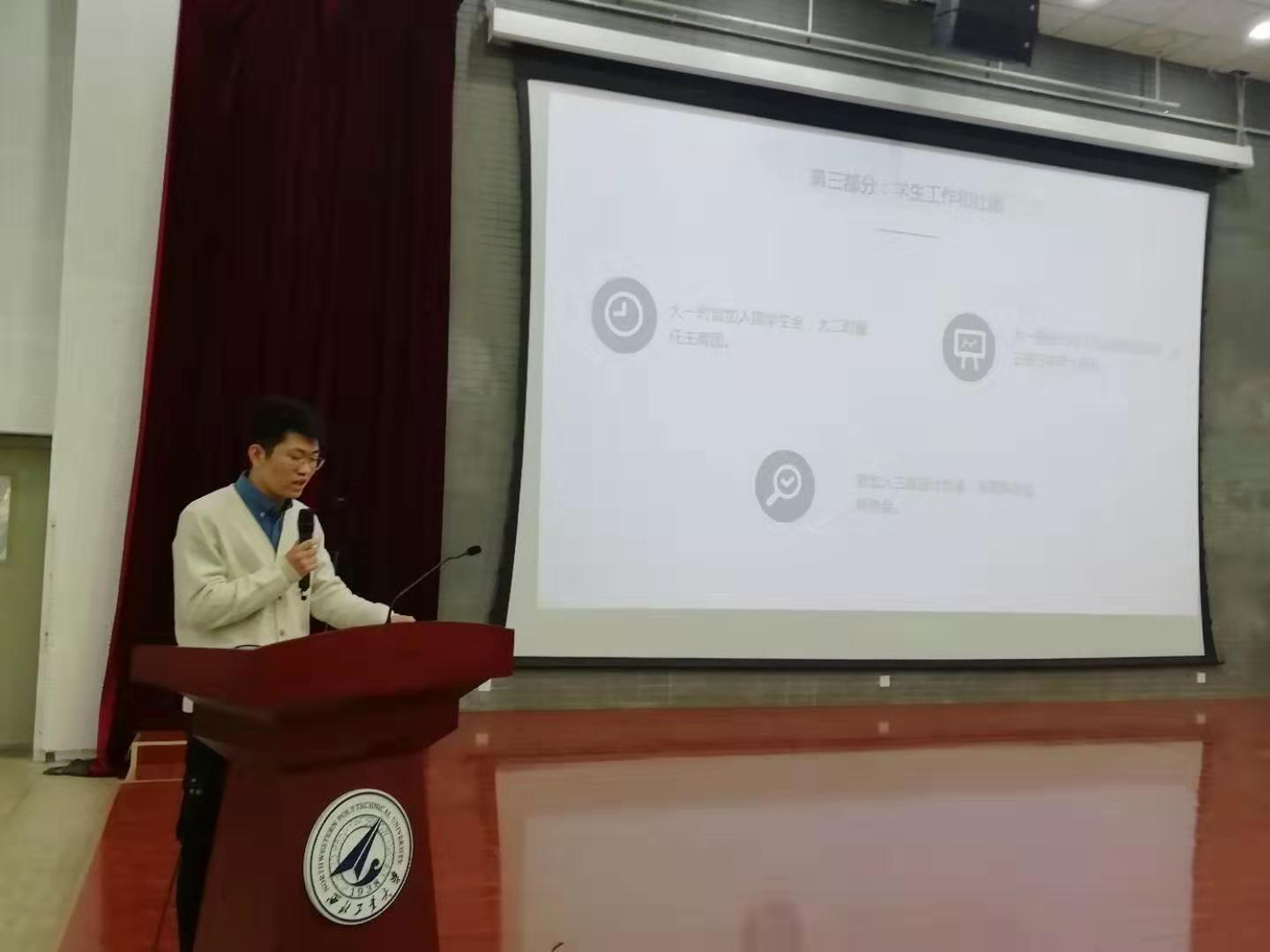 首先,张龙致开场辞,希望同学们认真听讲,学习优秀学长学姐们的成功经验,用于自己的学习和生活中,让自己的大学生涯更充实和成功。张龙强调,红色烙印、蓝色情怀是航海人的成长底色,只有将两者有机统一,才能很好的找到成长的方向和努力的目标。