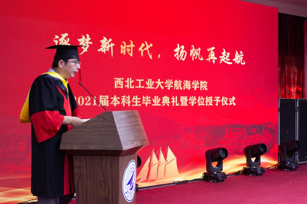 2021年6月28日,304永利官网登录入口举办了2021届毕业生毕业典礼,院长潘光、书记孙华强、副院长崔荣鑫、曾向阳,副书记王银涛,校友发展基金会副秘书长徐伟霞出席典礼,2017级辅导员杜鹏,学院各专业及方向负责人、教师代表、参加典礼,典礼由曾向阳主持。