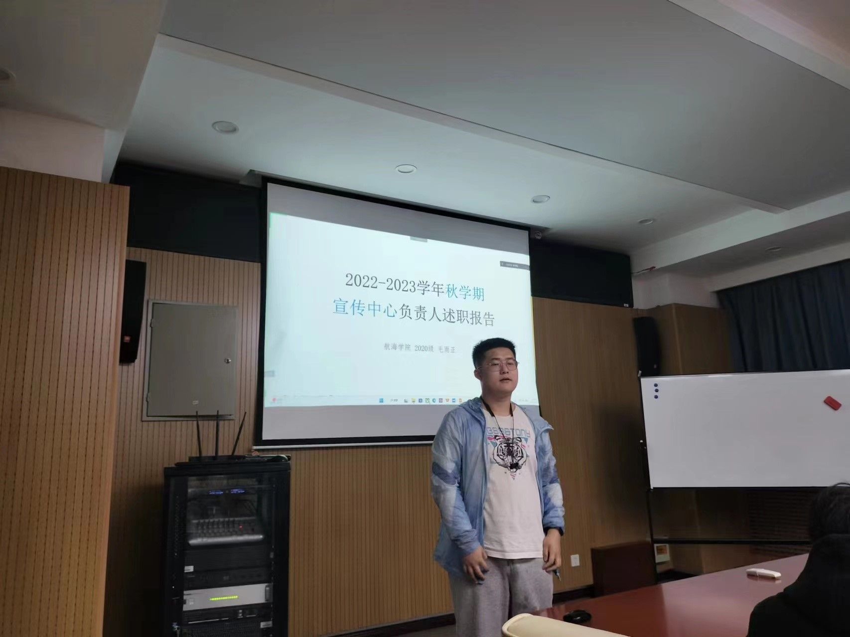 各部门负责人述职报告结束后,康嘉伟进行了总结,并对上一学期各部门的工作进行简评,表扬各部门的优秀工作成绩,并提出需要改进的方面。