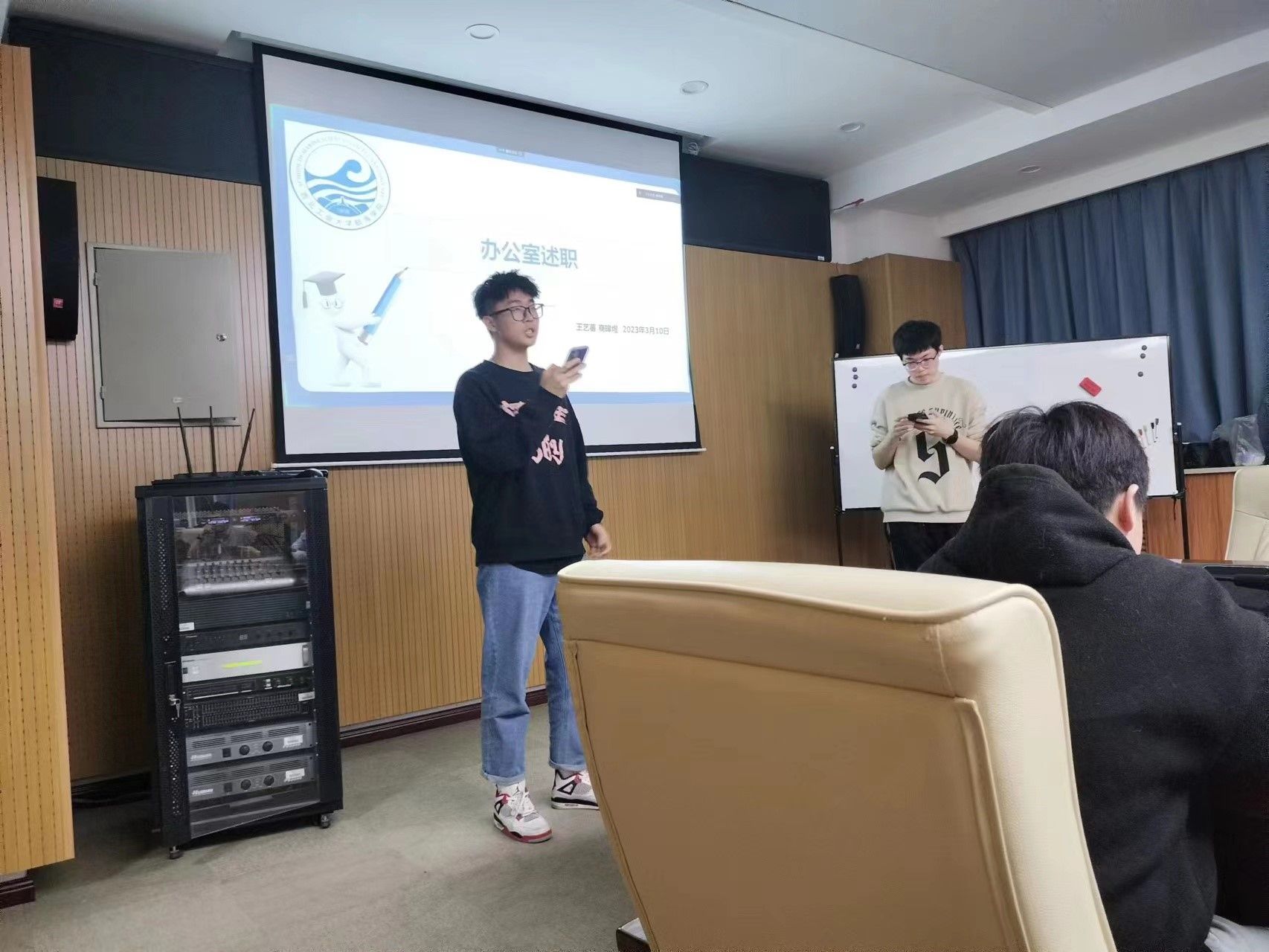 随后,办公室负责人商皞煜和王艺蕃共同完成了办公室工作述职。作为学生会的统筹部门,在过去一学期的活动中,办公室都起到了重要作用。未来办公室将继续发挥统筹作用,确保学生会工作顺利进行。