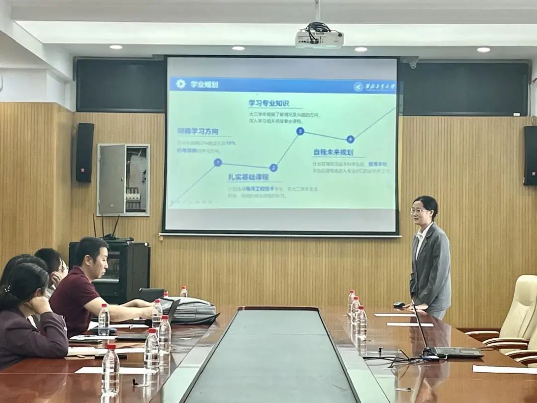 会议伊始,304永利官网登录入口2022级黄震中海洋班班主任杨占龙详述了黄震中海洋班的发展近况与选拔目的,特别介绍了黄震中海洋班机电融合、本硕衔接、奖惩有方的特色优势。例如,304永利官网登录入口特设5000元专项奖学金来支持黄震中海洋班学员的学习生活,并实施两次学业预警(课程不及格现象、班级位比后20%、年级位比后50%)的淘汰机制。