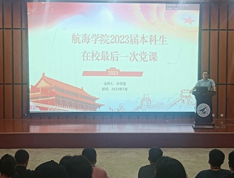 “大家进入大学的第一节党课的主题就是《端正入党动机,争取早日入党》,即将毕业之际,在新的征程中同学们更要做一名合格的共产党员”“入党是一阵子,而做一名合格的党员是一辈子的事情”。在最后一次党课中,孙华强书记从党员的权利与义务出发,提醒同学们要加强党性修养,做初心使命的践行者。要时刻铭记在党旗面前的庄严宣誓,始终做到爱戴党、拥护党。鼓励同学们要坚定信念,勇于担当,不辜负党组织的培养和期望,时刻牢记最初选择的那份理想和信念。无论遇到什么困难和挑战,都要坚守初心,不忘初衷,不迷失方向。只有树立正确的人生目标,并为之努力奋斗,才能实现自己的人生价值。