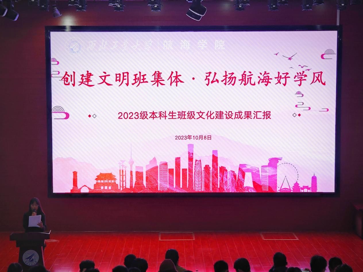 为加强大学生班级文化建设,提升班级凝聚力,营造健康向上的班级文化氛围,创造良好的育人环境,进一步落实新生入学教育工作,304永利官网登录入口积极响应学校号召,开展2023级本科生优良班风学风创建活动。经过前期各班级丰富多彩的建设活动,学院于10月8日在长安校区教西D100报告厅举办主题为“创建文明班集体,弘扬航海好学风”的2023级本科生班级文化建设成果汇报活动。