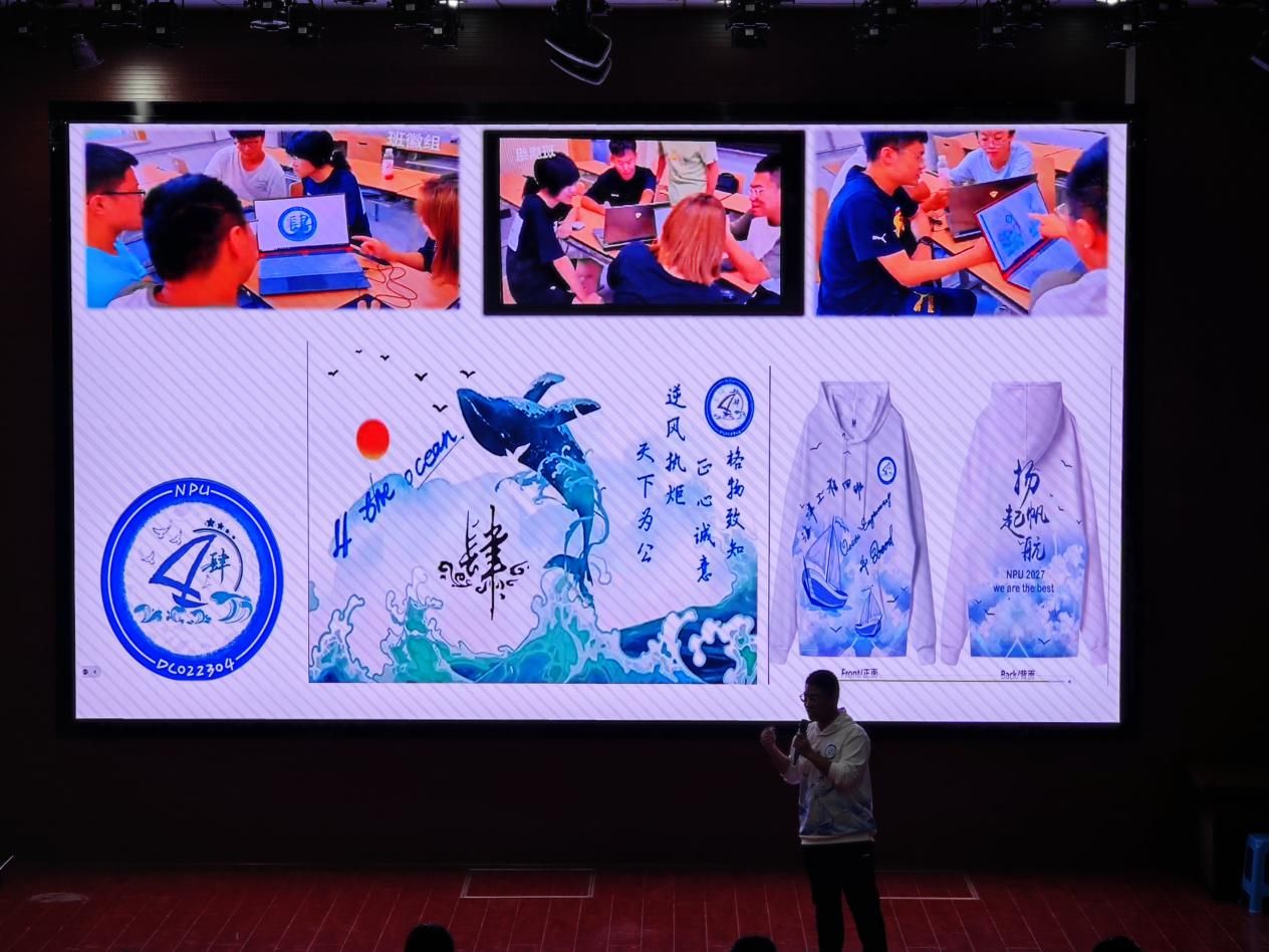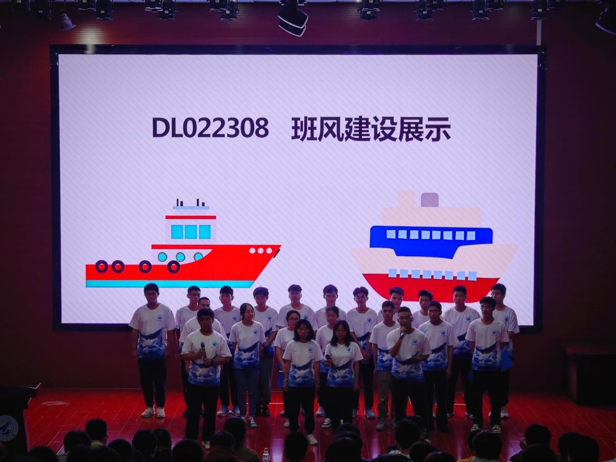 各班级代表围绕组织建设、思想政治教育、学风建设、班级管理、班级活动等内容对班级建设整体情况进行了汇报,通过生动的图片、图表和视频等多种形式展示各自班级的特色和亮点。尤其是班徽、班旗和班服的设计部分,各班级围绕其中设计的巧思、丰富的元素、深刻的寓意进行了深入解读,不仅体现了学院的“航海”特色,也展现了班级的良好风貌。此外,同学们也通过班歌合唱、诗歌朗诵、舞蹈表演等各种方式向在座评委和同学们展示班级风采,呈现出充沛的活力。