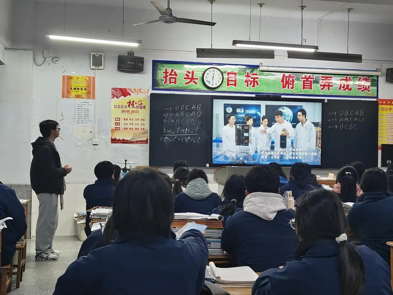 "旬中驻瓜大使团"队在队长王东东的带领下重返母校,走进高三班级,开展"情系母校·筑梦启航"主题宣讲活动。团队成员以大学亲历者视角,通过精心制作的图文视频,从办学特色、校园文化、招生政策等方面展开生动详尽的介绍。在团队精心设计中"校史知多少"的互动中,对"公诚勇毅"校训精神解读引发热烈讨论,同学们争相抢答赢取文创纪念品,现场气氛活跃非凡。最后环节,团队成员结合自身经验分享高考策略,鼓励学弟学妹心怀凌云志,青春不言弃。