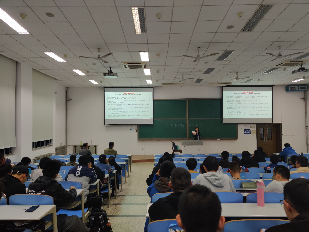 讲座开始时,王莉老师通过提问的方式为同学们赠送了《就业宝典》,充分调动了同学们的积极性和活跃度。接着,王莉老师借助毕业视频、往年就业数据、学长求职案例等为同学们形象地展示了一些优秀毕业生的经历,以及历届毕业出国、上研和工作的情况,让同学们能够得以学习和汲取前人的经验和教训,认真思考自己大学期间的奋斗目标,并开始着手规划个人今后的职业发展方向。王莉老师给同学们推荐了一些利用好“大学黄金四年”的有效方法,并明确了大学毕业时需要具备的基本素质与能力。王莉老师教导同学们在大学期间要努力提升计算机和英语水平,为今后的求职和升学打下坚实的基础,同时希望同学们能够度过自觉自省、自律自强、自我认同的大学四年。最后,王莉老师借用电影《哪吒之魔童降世》里的一句台词“我命由我不由天”结束了本次讲座,激励同学们成功之时不可忘了过去,失败之时记得还有未来,在大学这四年里凭借自己的努力塑造一个更好的自己。