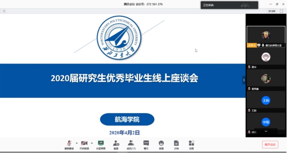4月2日下午,304永利官网登录入口2020届硕士研究生座谈会在线上举行,学院党委书记孙华强、副书记王银涛、副院长崔荣鑫、院长助理张龙、F1研究生辅导员廉杰以及校院两级全体优秀毕业生出席本次会议,会议由王银涛副书记主持。