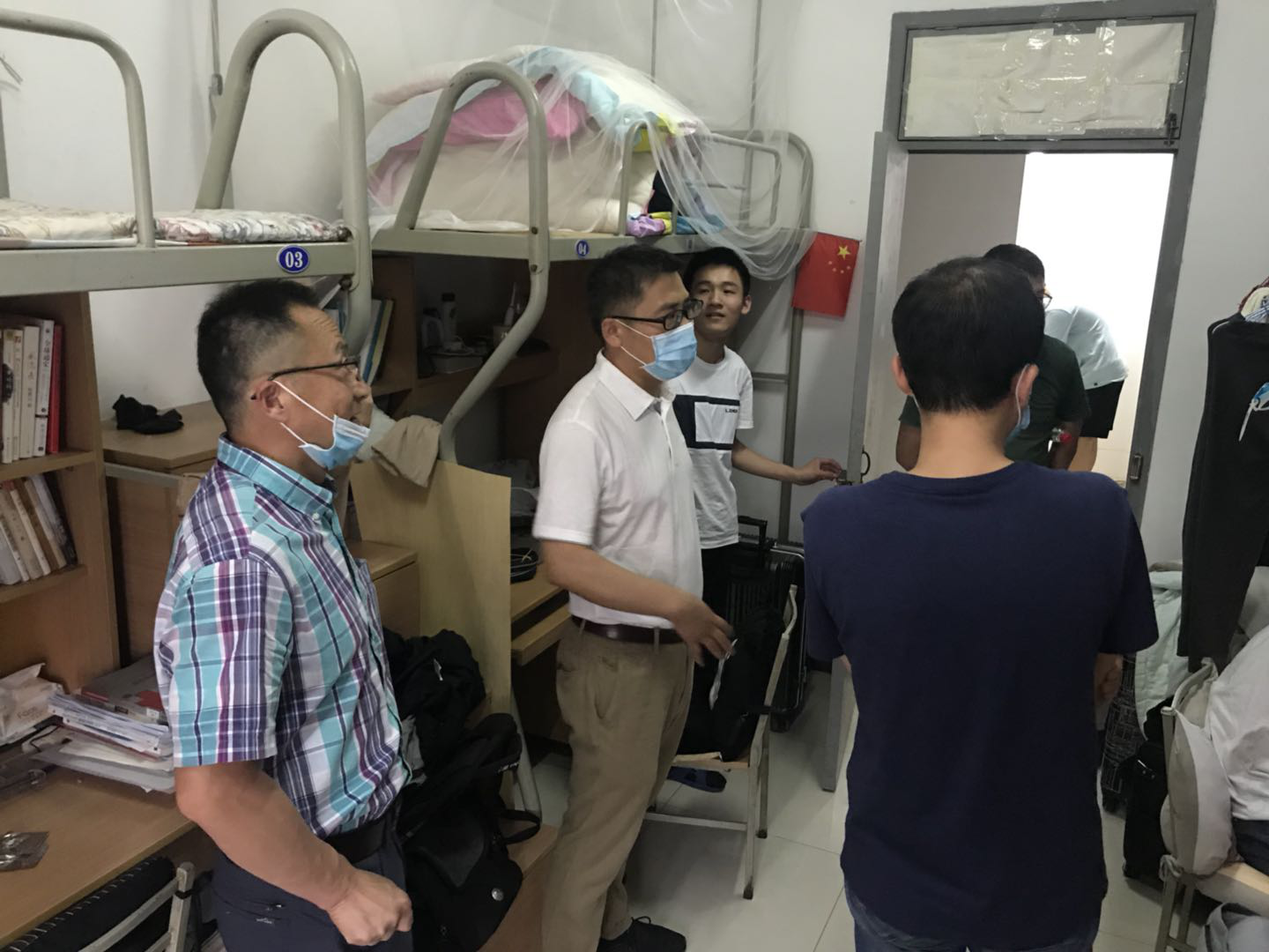 伴随着疫情防控进入常态化,第三批返校学生也在陆续返回校园,304永利官网登录入口本次计划返校人数388人。在此关头,我们依旧不能懈怠。为确保同学们的身体健康,了解居家隔离期间同学们的学习情况,欢迎同学们顺利返校,5月30日晚,304永利官网登录入口党委书记孙华强、党委副书记王银涛、院长助理张龙、2018级辅导员叶鹏程、2019级辅导员王士刚共同走访第三批返校学生宿舍。