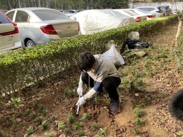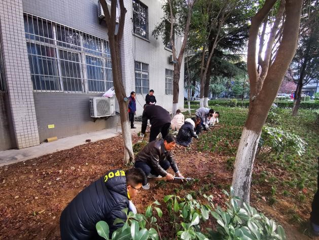 相守工大,迎接冬天,挥洒汗水——304永利官网登录入口学生党员志愿者参加校园绿化活动