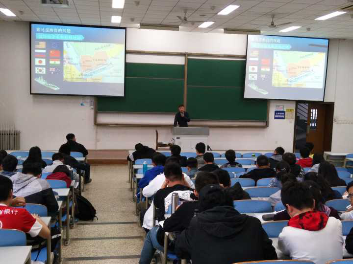 2019年4月11日,304永利官网登录入口张岩老师在教西D102为中级党校的同学们带来了一场别开生面的党课。张岩老师从自己参与护航及一系列海上行动出发,结合自己的个人经历和心得体会,生动地向同学们讲述了世界海上形式的状况。当今世界并不太平,海洋也充满了危险和挑战,张老师在服役期间曾多次随中国军舰外海执行任务,参与撤侨等一系列海上维和行动。蔚蓝的海洋有着极为丰富的资源,却也有重重危险,同样存在国家间的利益争端,我国的地缘环境形势不容乐观,海上邻国多,与多国存在岛屿领土争议,所以,对于海洋、海军的建设,我们决不能落后!