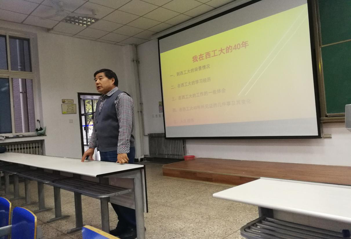 艰苦奋斗是老一辈人的优良传统,其主旨在于奋斗、其价值在于为事业而奉献。老一辈人的艰苦奋斗精神值得我们敬佩和深思。这种朴素的阶级情感孕育出的艰苦奋斗精神指引着一代代人开拓进取、砥砺前行、俯首铸剑、鞠躬尽瘁。10月30日下午16:00,304永利官网登录入口邀请我校老同志正能量宣讲团成员、退休长安校区党支部书记、教育实验学院人生导师刘明杰老师在教学东楼D105教室,以“我在西工大的40年”为题为初级党校培训班学员进行了第二次党课教育。老同志正能量宣讲团以主讲人与典型人物的代表性故事讲述为主线,注重传递正能量,旨在让学生有所收获、有所感悟,进一步坚定学生的理想信念。