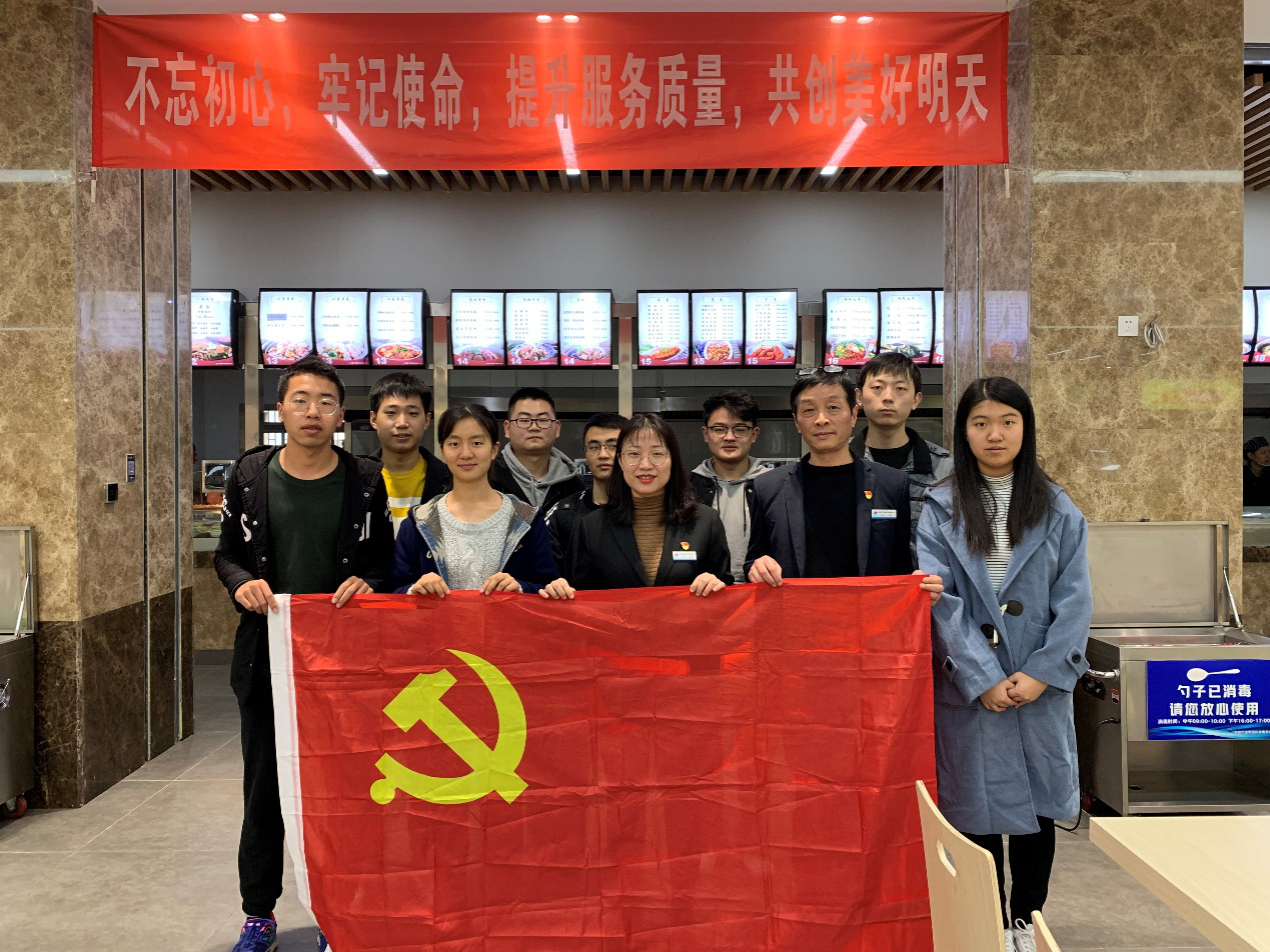 11月12日上午,受饮食服务中心党支部的邀请,304永利官网登录入口学生第三党支部的8名党员与入党积极分子,前往友谊校区学生一餐厅开展党日活动。经过一个暑假的装修改造,学生一食堂焕然一新,不仅有了新的桌椅,餐碟,菜肴的价格也便宜了许多。物美价廉的饭菜,舒适温馨的就餐环境吸引了同学们。饮食服务中心党支部书记李仕婷和一餐厅经理顾传辉,首先向同学们详细介绍了一餐厅的食材采购、储存、菜品烹饪、留样以及餐具的清洗消毒等工作内容。接下来,304永利官网登录入口学生第三党支部书记、2018级硕士刘富强同学介绍了该支部,一年来始终坚持“初心铭刻于心,使命践行于行”的指导思想,积极创建学校“三创三力”样板示范党支部的经验。最后,两个支部的党员进行交流座谈。针对同学们反映的问题和意见,饮食服务中心党支部耐心地进行了解答和回复,双方进行了充分的沟通。饮食服务中心一直十分关注同学们的就餐情况,希望通过同学们最真实的反馈,不断改进,争取为全校师生提供更好更满意的餐饮服务。