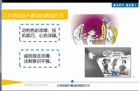 廉洁诚信教育的意义,在于提高学生的道德修养,使同学们形成自我道德约束力,将廉洁与诚信的品德内化于心,外化于行。本次廉洁诚信教育课为同学们划出一条道德和行为底线,希望同学们谨记于心,在日后的学习、生活中不断提高自律意识,坚守好初心,为国家发展、社会进步做出积极的贡献。