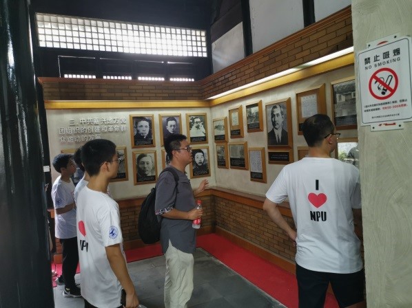 上午9时许,实践队到达嘉兴五四文化博物馆。任树伟老师首先进行了简短的实践教学开班仪式,并与博物馆方馆长一同进行了大学生“红色传人”教育实践基地挂牌仪式。尔后,通过博物馆讲解员的现场教学,队员们学习了从五四运动到建党前期的运动思潮,了解了五四运动与中共一大的关系。队员们还参观了嘉兴百年风云人物,看到了百年间嘉兴人才辈出,慨叹新时代的今天离不开这些前辈的呕心沥血。