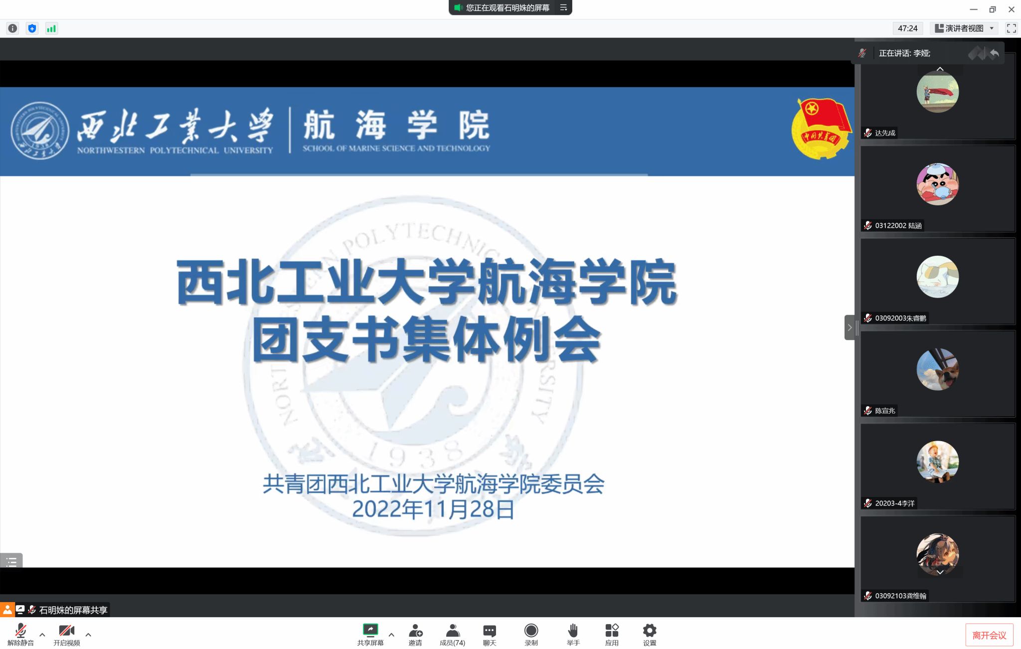 随后,李娅向各团支部书记传达了年底各项总结与近期重要工作安排。各团支部应高度重视2022年团支部“对标定级”工作,各团支部书记应仔细阅读相关工作通知与要点并认真对待年底工作述职,在相应时间节点按质按量完成各项工作。同时,鼓励共青团干部参加304永利官网登录入口“启真杯”团干部素质能力大赛,珍惜此次难得的锻炼机会。