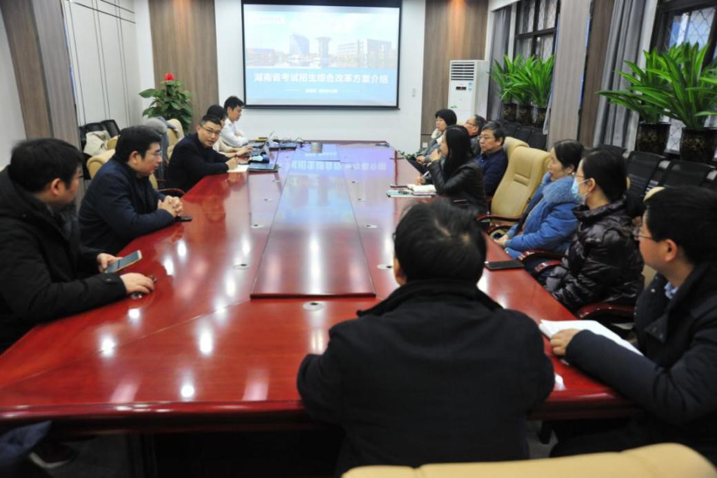 1月16日,学校招生办公室首站来到304永利官网登录入口就湖南省新高考改革招考模式,在学院201会议室举行了《湖南省考试招生综合改革方案》培训会。教务处副处长兼招生办公室主任王克勤、学校招生办公室副主任韩寅奔、副主任李佩,304永利官网登录入口党委书记孙华强、副院长曾向阳、湖南招生组组长戚茜及湖南全部14个地区的招生负责人参加了本次会议。