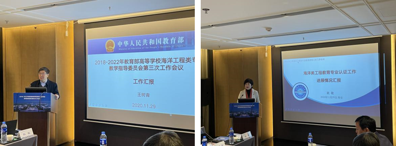 开幕式结束后,海洋工程类专业教指委秘书长、中国海洋大学王树青教授向会议做了教指委年度工作报告。在随后的会议特邀报告环节,哈尔滨工程大学本科生院常务副院长耿敬、浙江大学海洋学院副院长王晓萍、304永利官网登录入口院长潘光分别作了题为《海洋类工程教育专业认证工作进展》、《本科专业建设和教学改革的探索与实践》、《海洋工程大类-新工科专业建设汇报》的特邀报告。特邀报告环节由海洋工程类专业教学指导委员会副主任委员孙金声院士主持。