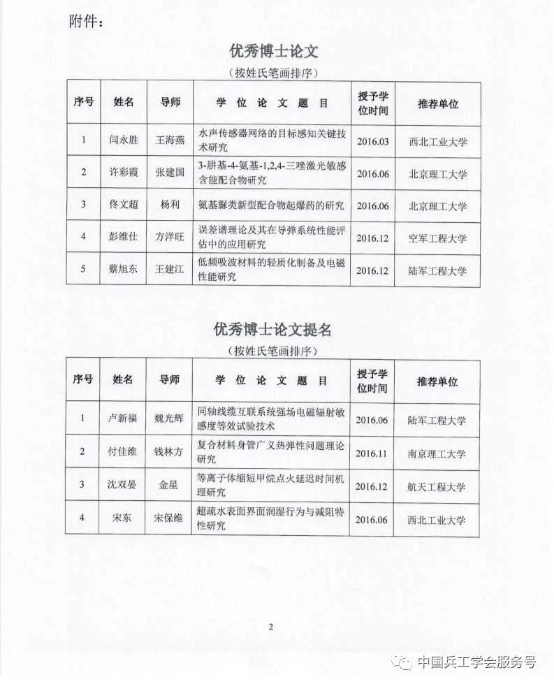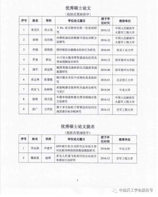 据悉,中国兵工学会评选兵器科学与技术学科全国优秀硕博士学位论文从2017年开始,今后每年评选一次,旨在鼓励研究生创新精神,提高兵器科学与技术学科人才培养质量。