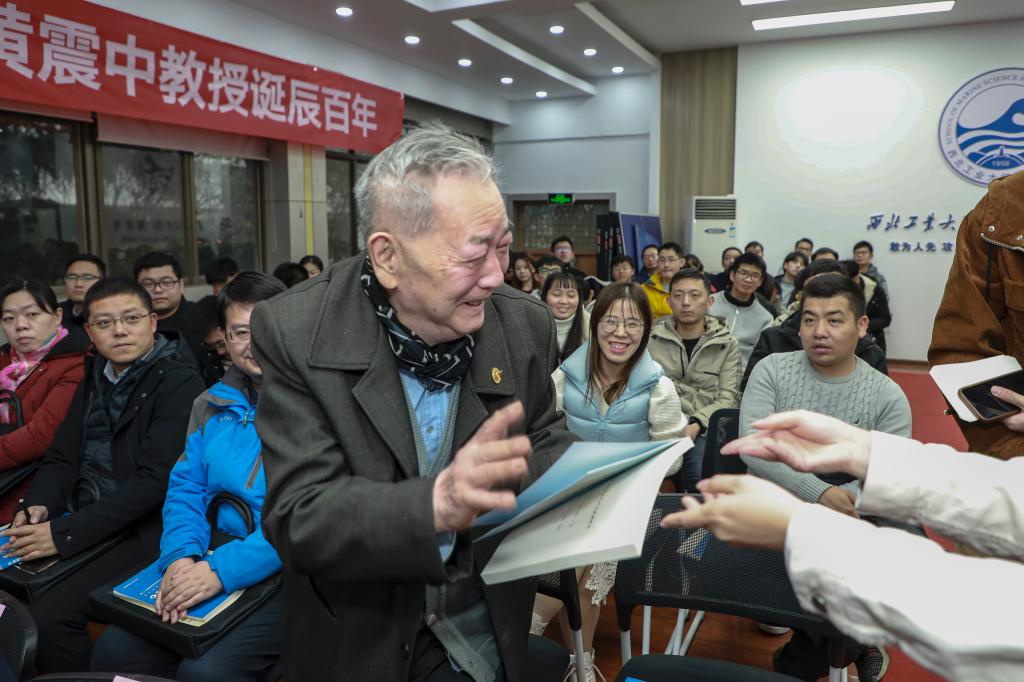 在接下来的座谈交流环节中,纪念文集作者代表304永利官网登录入口原党委书记李保义、中国工程院院士马远良、中国工程院院士徐德民、304永利官网登录入口退休教师李增楠和董大群教授、海军工程大学教授苑秉成,家属代表黄建国,学院青年教师代表和学生代表纷纷发言,通过一个个生动的事例、一段段深情的回忆,用朴实的话语追忆黄震中教授,使这位爱国报国、敢为人先、勤谨实干、平易近人,又具远见卓识的学术大师的风范更加清晰鲜活地呈现在大家面前,令人深受感染,并对“敢为人先,攻坚克难,团结协作,无私奉献”的航海精神有了更深刻的体会。